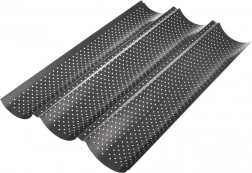 Wytrzymała stal węglowa wytrzymuje temperatury do 230 °C i zapewnia stabilne podparcie dla 3 bagiet jednocześnie. Forma świetnie sprawdzi się nie tylko do pieczenia świeżych bagiet, ale także do ich zapiekania czy podgrzewania.