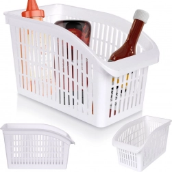 Ten uniwersalny organizer pomoże przejrzyście uporządkować butelki z sosami, owoce, warzywa i inne produkty w lodówce, spiżarni lub szafce. Otwarta, perforowana konstrukcja zapewnia cyrkulację powietrza dla lepszej świeżości i szybkiej wizualnej kontroli zawartości. Solidny, a jednocześnie lekki materiał sprawdzi się w codziennym użytkowaniu.
