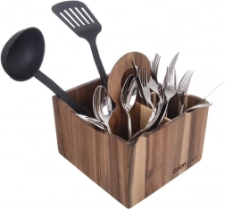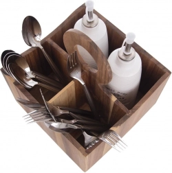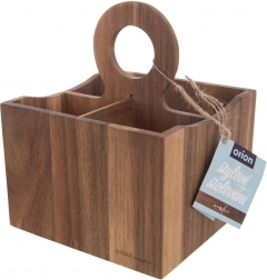 Wykonany z drewna akacjowego, które jest naturalnie odporne na wilgoć i odkształcenia, nie pochłania zapachów i szybko schnie. Stojak świetnie sprawdzi się w domu oraz w gastronomii – w restauracji czy bistro ułatwi serwowanie sosów, przypraw i sztućców, a jednocześnie prezentuje się estetycznie dzięki naturalnemu usłojeniu drewna.