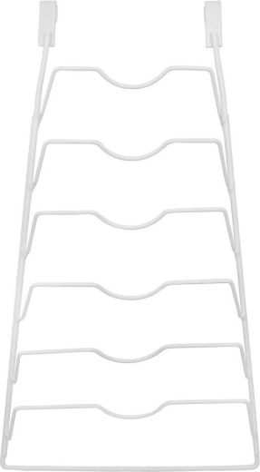 Praktyczny wiszący uchwyt na 6 pokrywek z wysokiej jakości chromowanego metalu w białym kolorze. Łatwo zawiesisz go na drzwiczkach szafki kuchennej o grubości do 2,5 cm, co pomoże zaoszczędzić miejsce i utrzymać porządek w kuchni. Idealny do mniejszych kuchni, zapewnia szybki dostęp do pokrywek bez bałaganu.