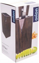 Elegancki drewniany stojak na noże ORION Wooden o wymiarach 11 × 11 × 23 cm oferuje uniwersalne i bezpieczne przechowywanie noży różnych typów – stalowych, ceramicznych oraz mieszanych. Dzięki wyjmowanemu plastikowemu włóknu dopasowuje się do kształtu ostrza bez ryzyka stępienia i utrzymuje w kuchni doskonały porządek. Stabilność zapewniają antypoślizgowe podkładki, a wysokiej jakości ciemne drewno dodaje Twojej kuchni stylu.