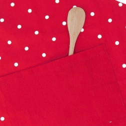 Czerwony kolor z białymi grochami doda Twojej kuchni charakteru i jednocześnie niezawodnie ochroni Twoje ubranie.