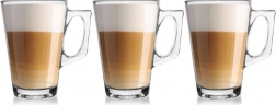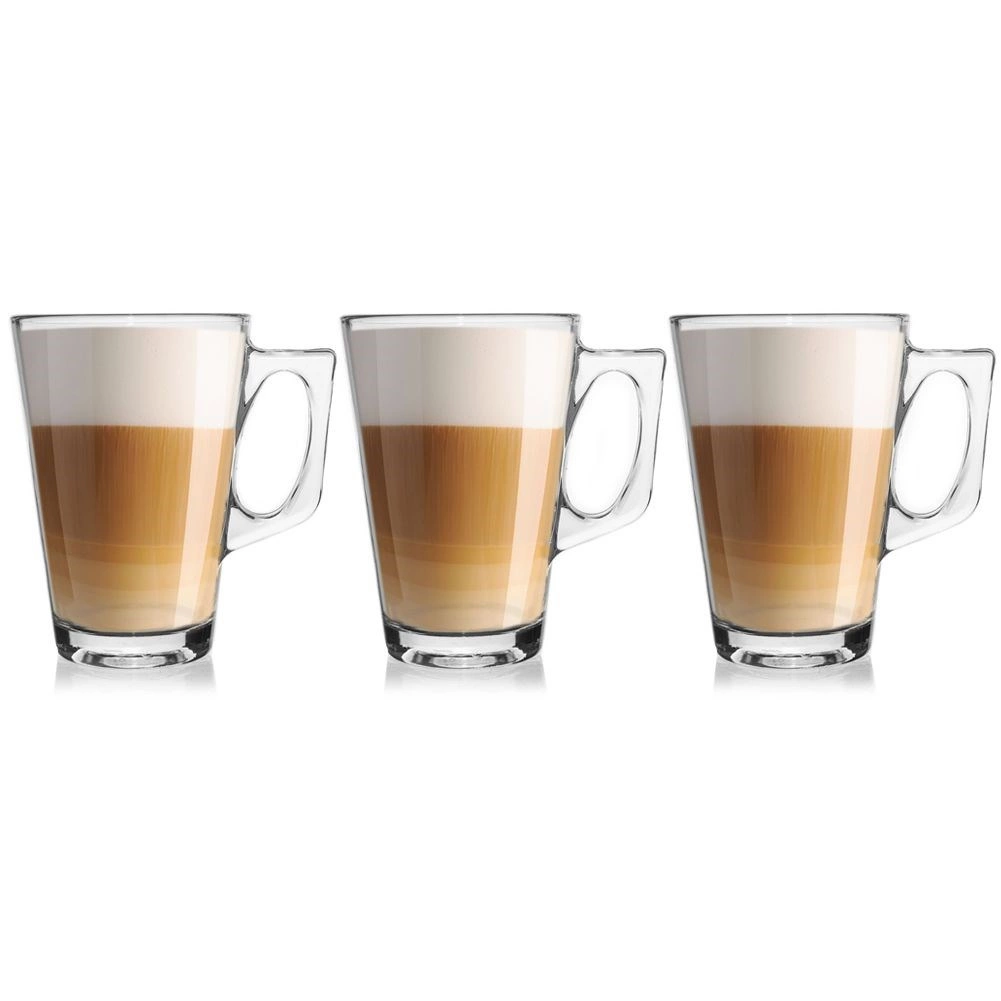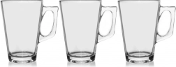 Elegancki zestaw trzech szklanek o pojemności 240 ml zachwyci miłośników kawy i herbaty. Każda szklanka jest wykonana z wytrzymałego szkła z wygodnym uchem i ma nowoczesny kształt do stylowego serwowania. Nadają się do zmywarki, idealne do napojów gorących i zimnych. Wytrzymałe szkło, wygodne ucho, uniwersalne zastosowanie, nowoczesny design.