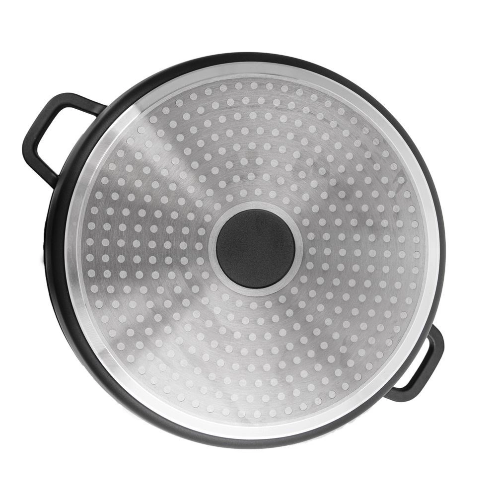 - Uniwersalne zastosowanie: gaz, prąd, płyta ceramiczna, halogen oraz indukcja; odpowiedni do piekarnika (pokrywka do 200 °C).