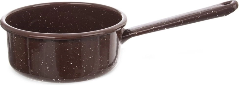 Praktyczny emaliowany rondel o pojemności 900 ml i średnicy 14 cm w brązowym kolorze z delikatnym cieniowaniem jest idealny do podgrzewania, gotowania i duszenia mniejszych porcji oraz sosów. Odpowiedni na kuchenki gazowe, elektryczne, ceramiczne, halogenowe i indukcyjne, z długą rączką i możliwością zawieszenia. Łatwa pielęgnacja, można myć w zmywarce.
