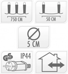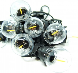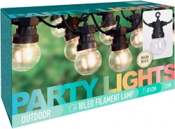 Stylowa świetlna girlanda o długości 7,5 m z 10 żarówkami LED o średnicy 5 cm tworzy ciepłe, nastrojowe oświetlenie na tarasie, balkonie i w ogrodzie. Oferuje uniwersalne zastosowanie w domu i na zewnątrz, łatwy montaż dzięki haczykom na każdej oprawce oraz oszczędną pracę. Zasilanie z sieci, IP44 do użytku zewnętrznego.