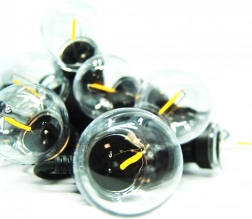 Kuliste żarówki z filamentami LED emitują przyjemne ciepłe światło, które podkreśla atmosferę wieczornego spotkania na tarasie lub ogrodowego przyjęcia.
