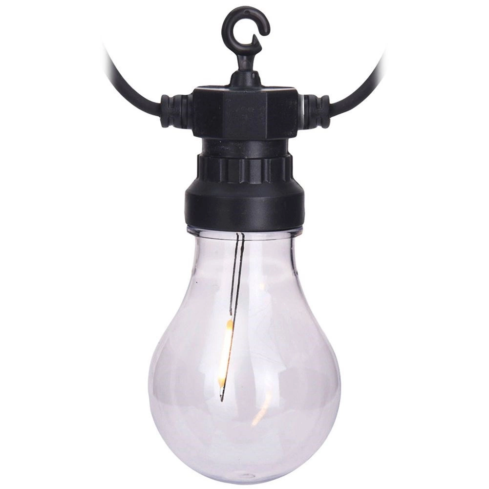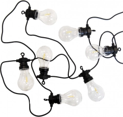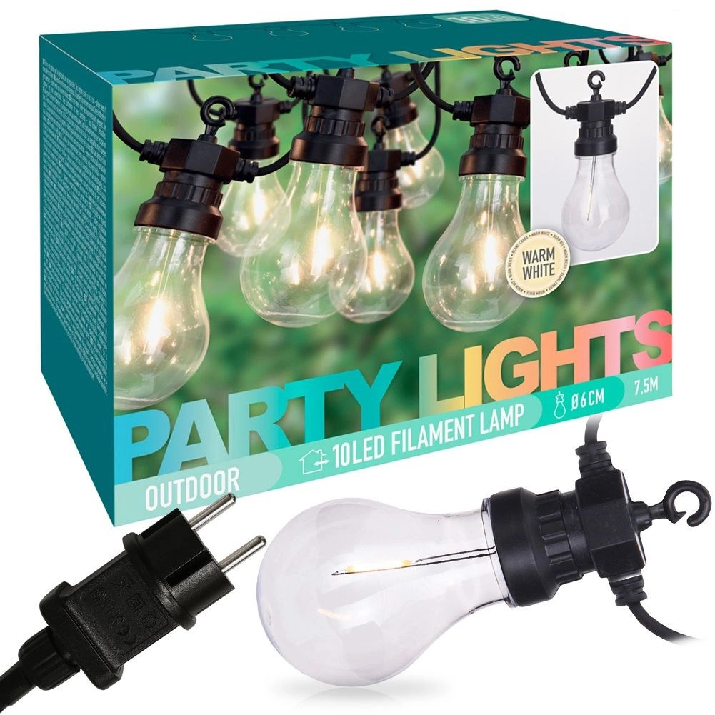 Stylowa ogrodowa girlanda LED o długości 7,5 m z 10 przezroczystymi żarówkami LED tworzy przyjemną atmosferę na tarasie, balkonie i we wnętrzach. Dzięki klasie ochrony IP44 nadaje się do użytku na zewnątrz, ma ciepłe białe światło, energooszczędną pracę oraz łatwe zawieszenie za pomocą zintegrowanych haczyków.