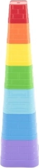Kolorowa wieża do układania Technok Kubus z solidnych plastikowych klocków rozwija małą motorykę, wyobraźnię przestrzenną i cierpliwość. Zawiera 7 kwadratowych elementów, które dokładnie do siebie pasują. Dzieci będą się nią świetnie bawić w domu, w piasku i w wodzie. Łatwe układanie, nauka kolorów i rozmiarów, stabilna piramida o wysokości do 38 cm oraz bezpieczne wykonanie od 12 miesięcy.