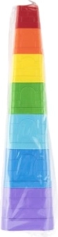 Siedem kwadratowych klocków w żywych barwach łatwo układa się w stabilną wieżę i wspiera koordynację oraz cierpliwość.