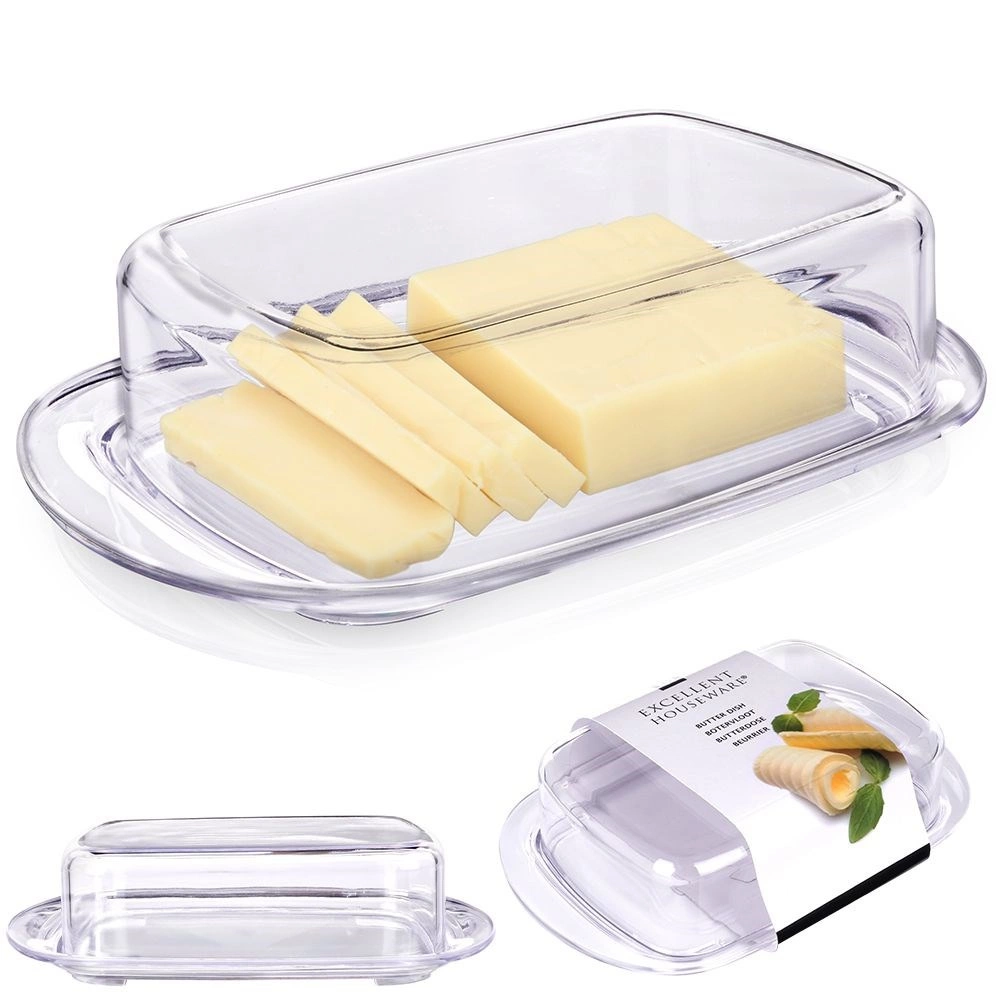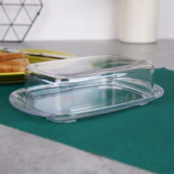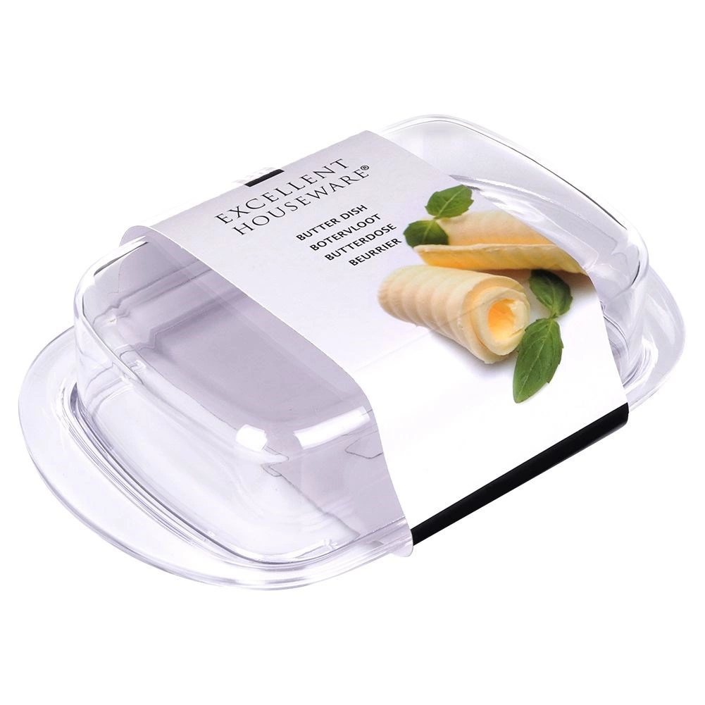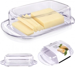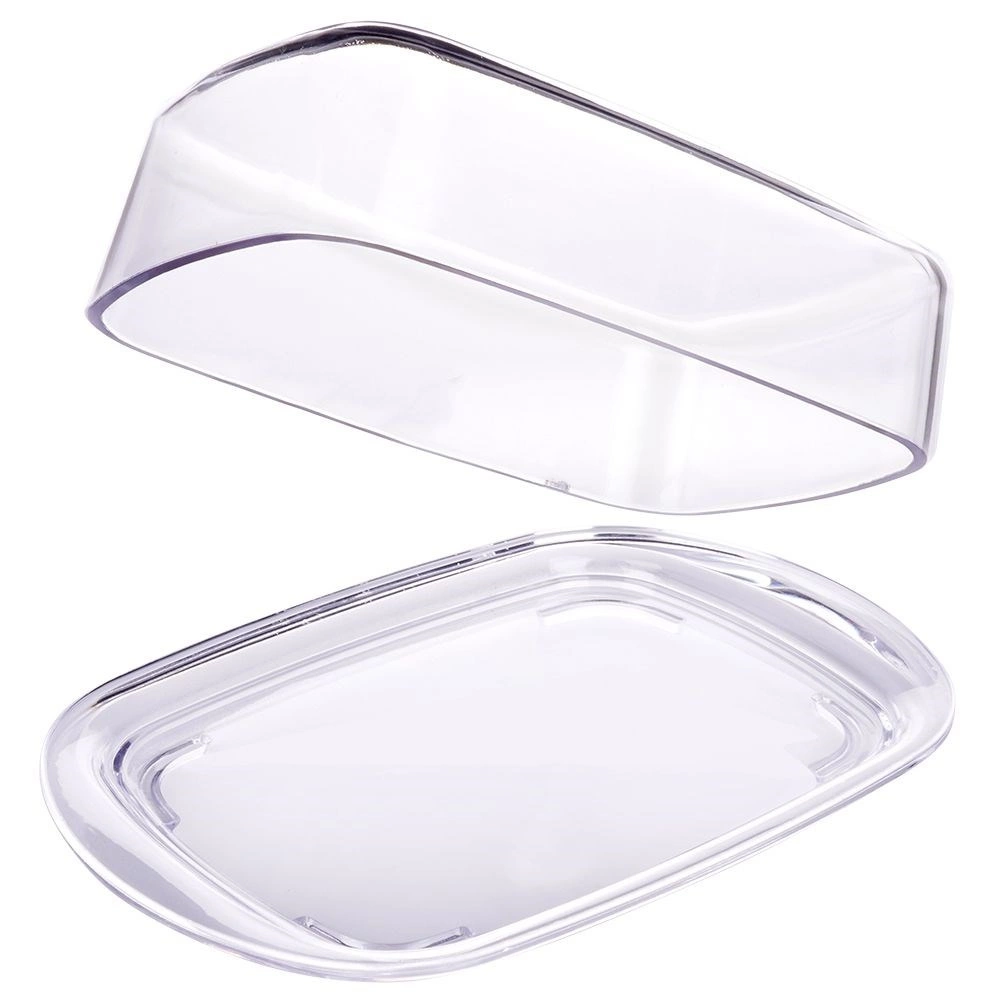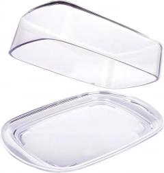 Przezroczysta pokrywka ściśle przylega do tacy, dzięki czemu masło pozostaje dłużej świeże i chronione przed zapachami z lodówki.