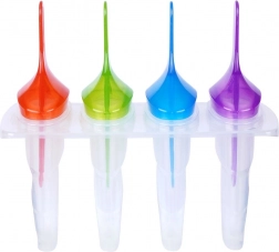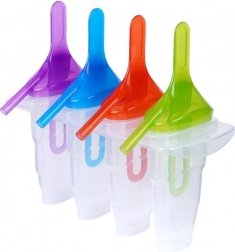 Przygotuj domowe lody łatwo i zdrowo. Zestaw zawiera 4 foremki w stabilnym stojaku, wykonane z wysokiej jakości plastiku bez BPA. Dzięki kolorowym uchwytom z osłoną na kapiące krople oraz praktycznemu stojakowi napełnianie, mrożenie i podawanie są wygodne. Łatwa obsługa, wielokrotne użycie i bezpieczny materiał na codzienne letnie orzeźwienie.