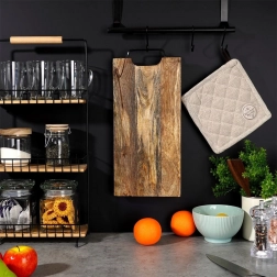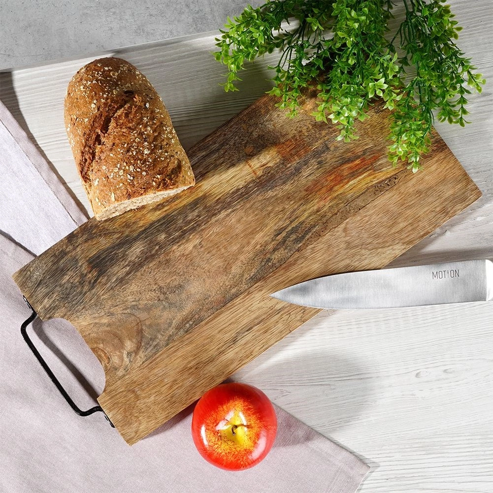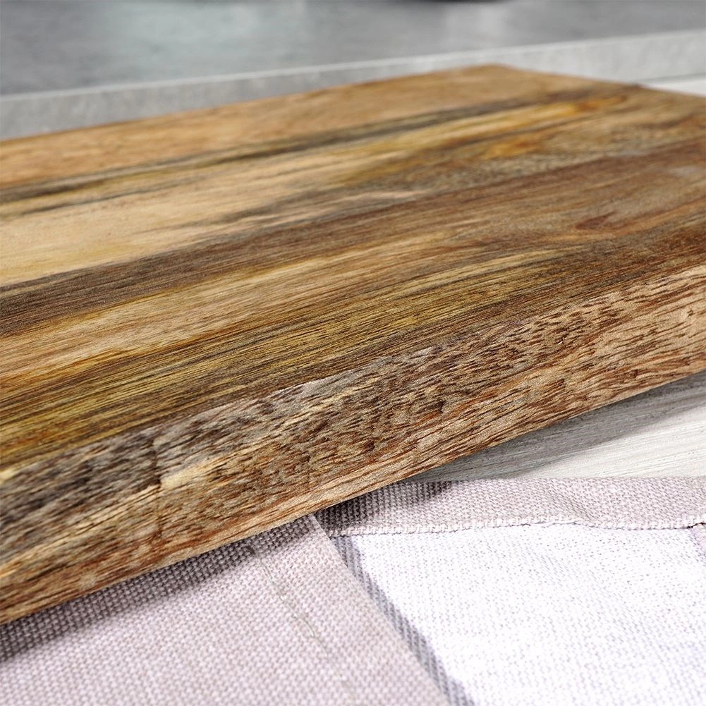 Podaruj swojej kuchni styl i funkcjonalność. Mastywna deska z drewna mango jest odporna na wilgoć i odkształcenia, nie absorbuje zapachów i jest łatwa w utrzymaniu. Dzięki przestronnej powierzchni wygodnie pokroisz pieczywo, warzywa i mięso, a także elegancko zaserwujesz sery, wędliny czy przystawki.