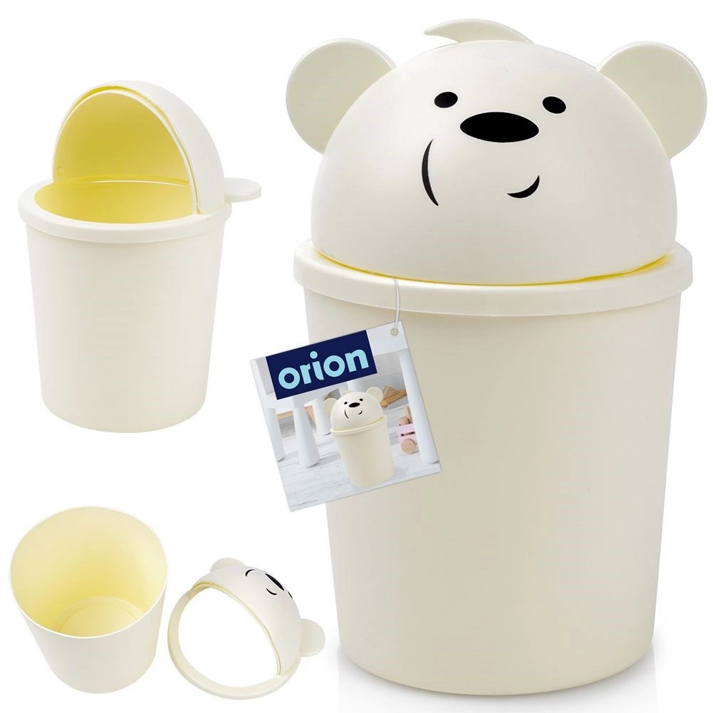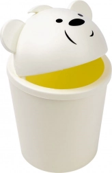 Uroczy kosz na śmieci o pojemności 1,5 l z uchylną pokrywką w kształcie niedźwiadka utrzyma drobne odpady pod kontrolą i bez nieprzyjemnych zapachów. Dzięki kompaktowym wymiarom (wysokość 20 cm, średnica 12,5 cm) sprawdzi się na biurku, w łazience, pokoju dziecięcym i biurze. Wytrzymałe, plastikowe wykonanie w kremowym kolorze łatwo się czyści i świetnie pasuje do nowoczesnych oraz klasycznych wnętrz.