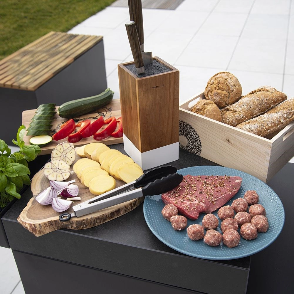 Wewnętrzną wkładkę łatwo wyjmiesz i umyjesz, także w zmywarce. Dolna część jest wyposażona w antypoślizgowe podkładki, dzięki czemu blok stoi stabilnie i nie ślizga się po blacie. Ponadczasowy wygląd pasuje do nowoczesnych i klasycznych wnętrz, pomagając utrzymać porządek w kuchni.