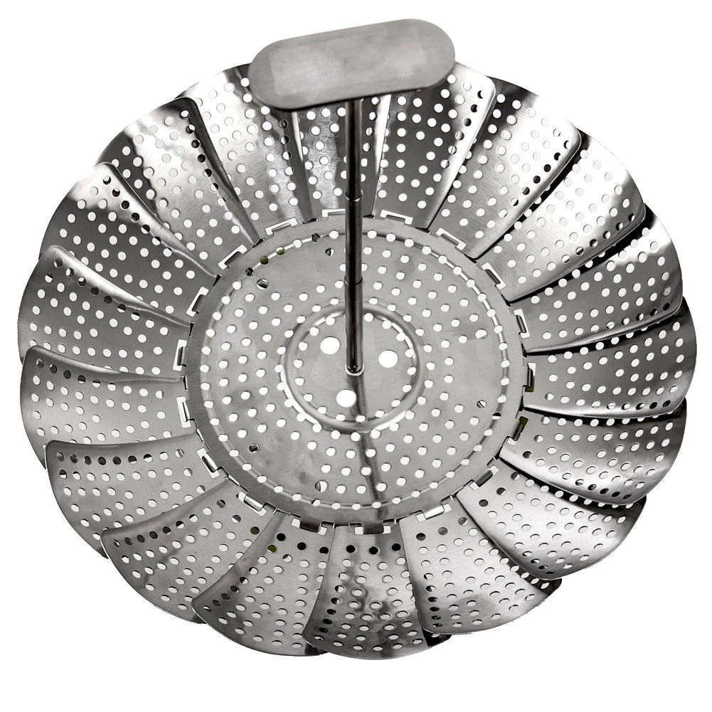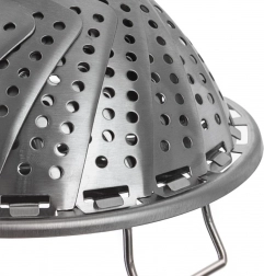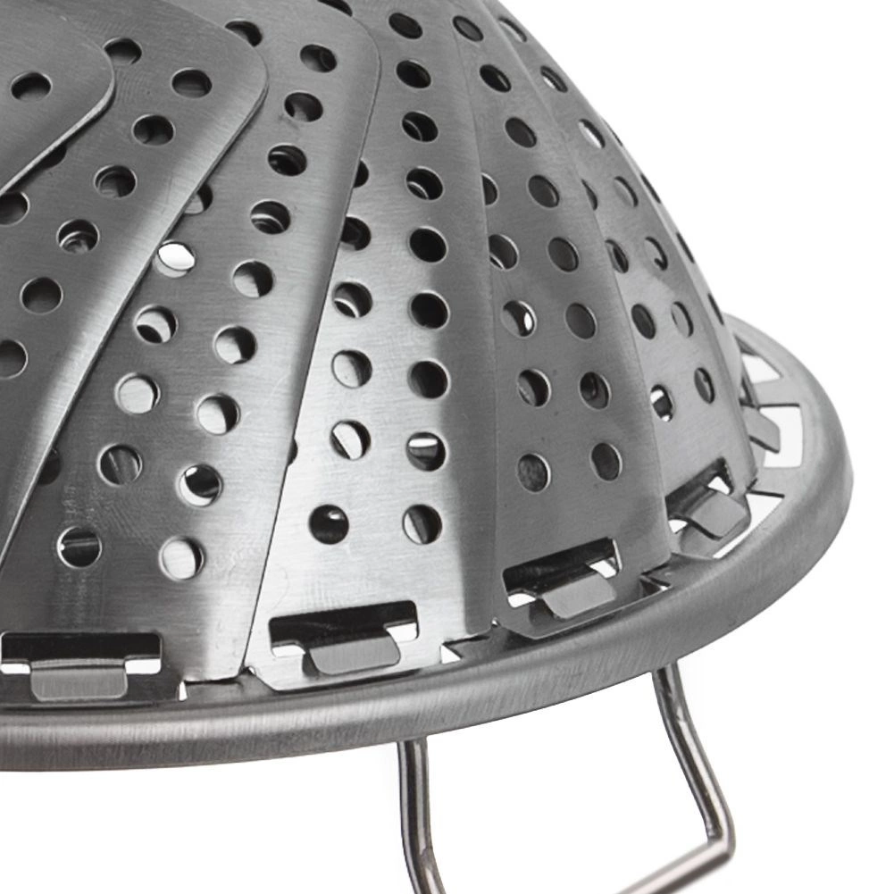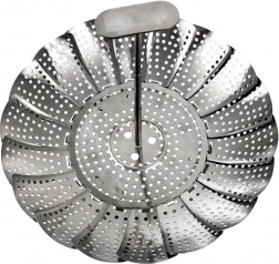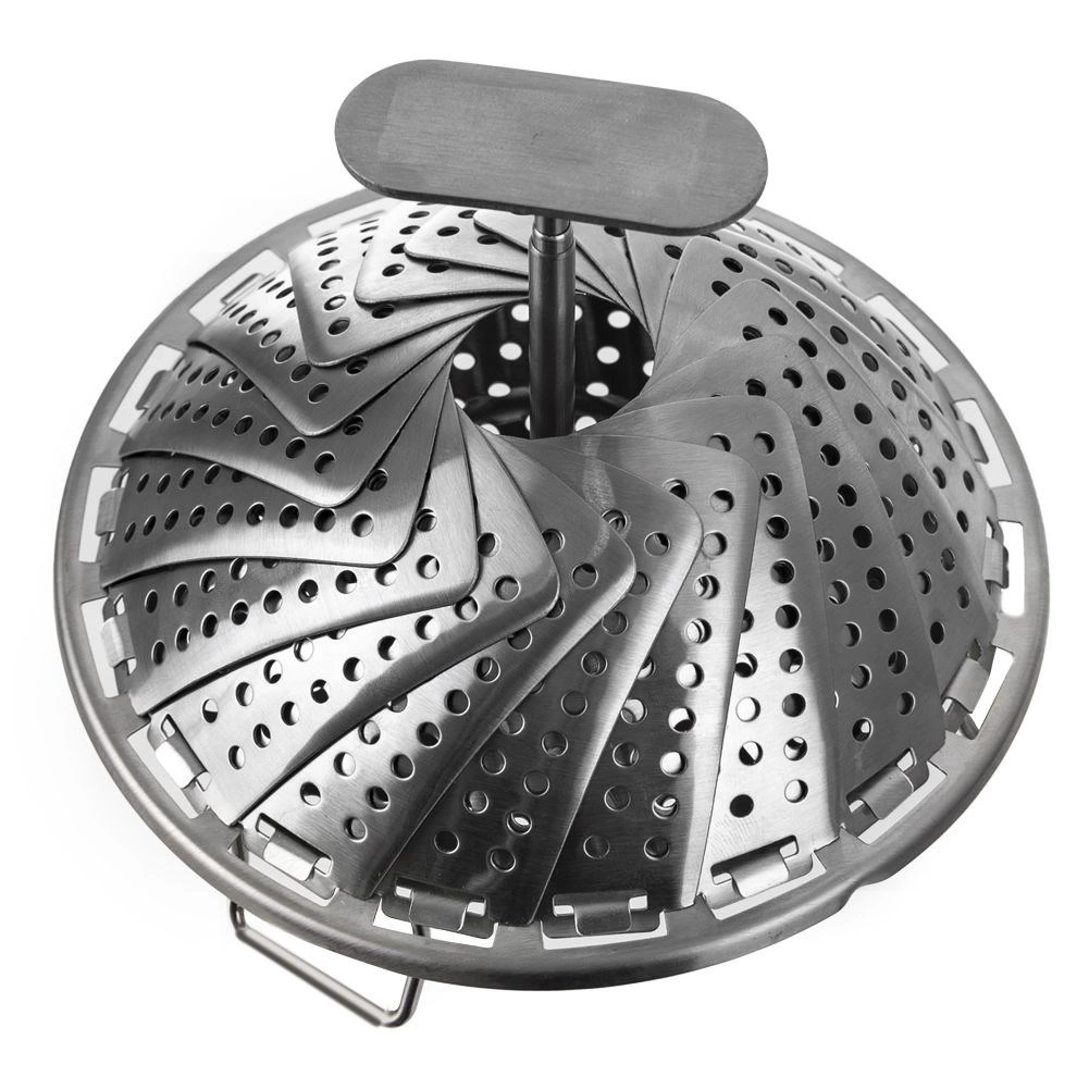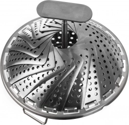 Praktyczny składany parownik z wysokiej jakości stali nierdzewnej jest idealny do przygotowywania potraw na parze. Rozsuwana średnica 14–23 cm umożliwia użycie w garnkach o różnej wielkości, a perforowane „listki” zapewniają równomierną cyrkulację pary i delikatną obróbkę żywności.