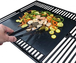 Ta cienka, lecz wytrzymała mata z tkaniny szklanej powlekanej teflonem zapewnia idealnie nieprzywierającą powierzchnię do grilla i piekarnika. Zapobiega wpadaniu drobnych kawałków przez ruszt, utrzymuje grill w większej czystości i sprzyja równomiernemu wypieczeniu bez przypiekania i rozrywania.