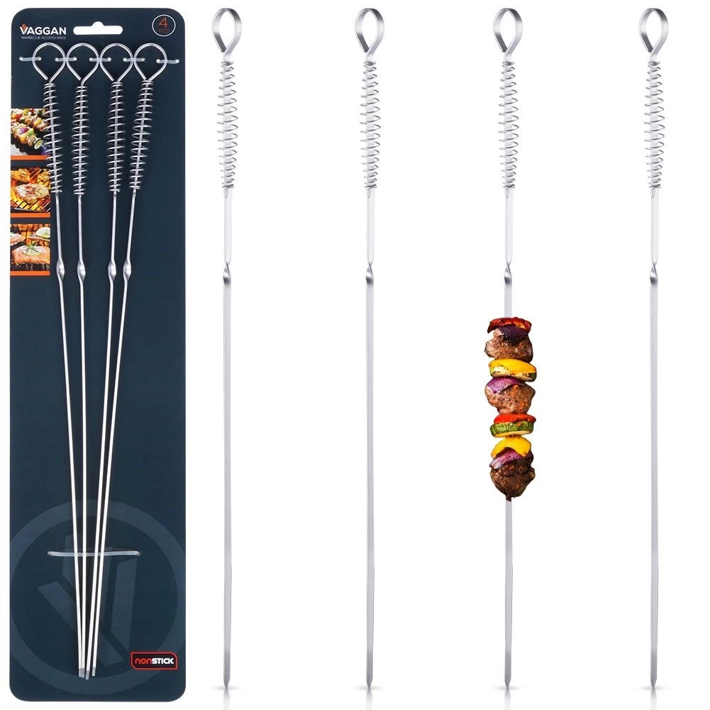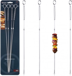 Z tym zestawem szpikulców przygotujesz idealnie wypieczone szaszłyki, kebaby i warzywne przekąski. Wykonane są z odpornej stali nierdzewnej, która znosi wysokie temperatury i nie rdzewieje, więc posłużą przez wiele sezonów. Pętla na końcu ułatwia manipulację, zawieszanie i obracanie nad grillem.