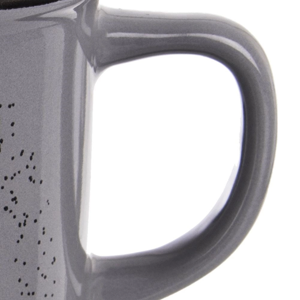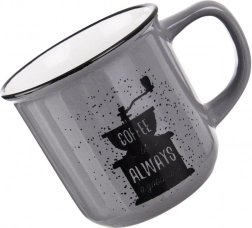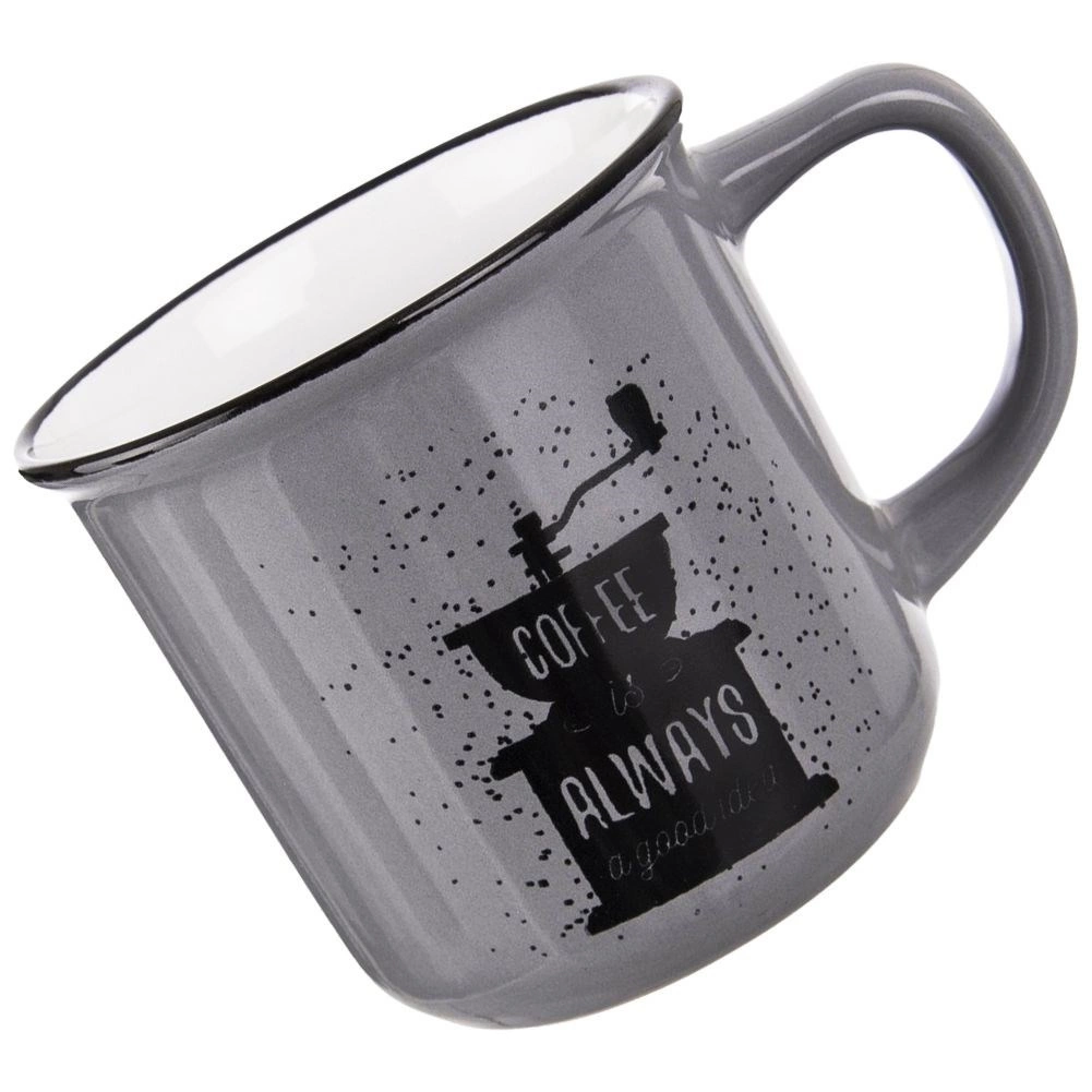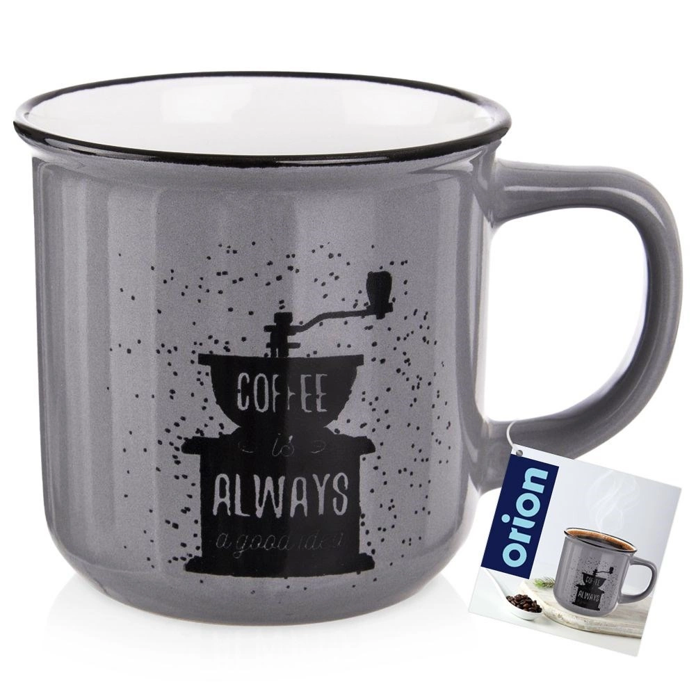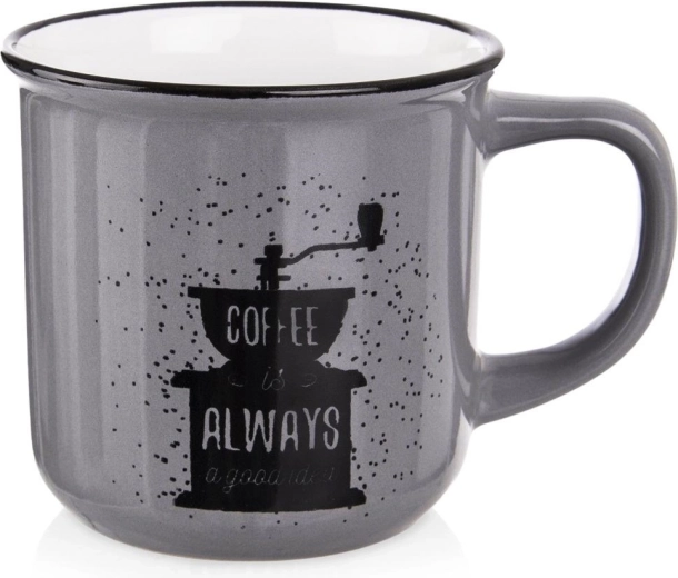 Ten uniwersalny kubek z wysokiej jakości ceramiki świetnie sprawdzi się do kawy, herbaty, kakao i innych gorących napojów. Stonowane szare wykończenie ze stylowym nadrukiem młynka do kawy pasuje zarówno do nowoczesnej, jak i rustykalnej kuchni. Prosty, klasyczny kształt zapewnia komfortowe użytkowanie na co dzień.