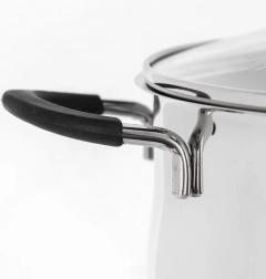 Ergonomiczne uchwyty z silikonową powierzchnią pozostają chłodne, szklana pokrywka z nierdzewną obwódką i zaworem pary zapewnia wgląd i kontrolę wrzenia. Wytrzymała konstrukcja z masywnymi ściankami nadaje się do kuchni domowych i profesjonalnych, a także elegancko posłuży podczas serwowania bezpośrednio na stół.