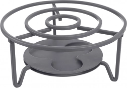 Wytrzymała metalowa konstrukcja w szarym kolorze jest stabilna i łatwa w pielęgnacji. Uniwersalny rozmiar 16,5 cm pasuje pod większość dzbanków i mniejszych garnków; wysokość 7,5 cm utrzymuje optymalną odległość od płomienia dla równomiernego ogrzewania. Ponadczasowy wygląd sprawia, że podgrzewacz świetnie prezentuje się na każdym stole i stanowi stylowy dodatek do serwowania.