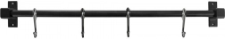 Praktyczny reling ścienny o długości 50,5 cm z czterema haczykami utrzyma Twoje kuchenne akcesoria zawsze pod ręką i przejrzyście uporządkowane. Dzięki solidnemu aluminiowemu wykonaniu w czarnym kolorze jest odporny, stabilny i doskonale pasuje do nowoczesnej kuchni. Łatwy montaż ze wszystkimi niezbędnymi elementami w zestawie oraz uniwersalne zastosowanie dla łyżek, łopatek i chochli.