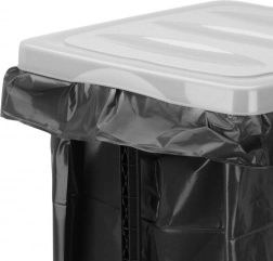 Utrzymuj porządek efektywnie i higienicznie. Ten stojak na worki o pojemności 60 litrów oferuje stabilne i wytrzymałe wykonanie w połączeniu białego i czarnego koloru. Uchylną pokrywę zaprojektowano tak, aby skutecznie zapobiegała wydostawaniu się nieprzyjemnych zapachów, a wewnętrzne klipsy pewnie mocują worek, gwarantując, że pozostanie na miejscu nawet przy większym obciążeniu.