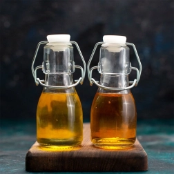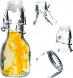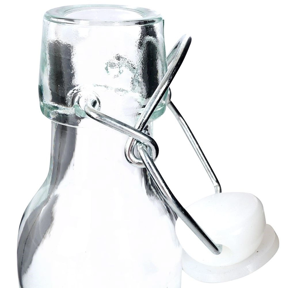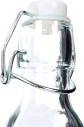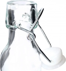 Ta kompaktowa butelka w stylu retro wykonana jest z wysokiej jakości przejrzystego szkła i świetnie nadaje się na oliwę, oleje smakowe, domowe likier y, wina lub owocowe syropy. Metalowy klips z silikonową uszczelką tworzy hermetyczne zamknięcie, które zapobiega wyciekom i pomaga zachować aromat oraz smak.
