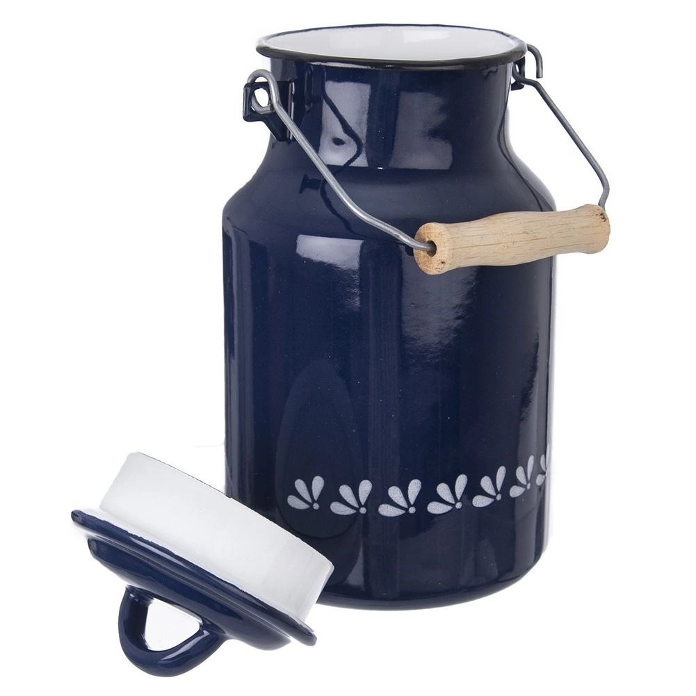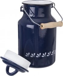Ten emaliowany kanister na mleko w stylu retro doskonale sprawdzi się do codziennego użytku w domu i na działce. Pojemność 2 litry i solidna pokrywka chronią zawartość przed owadami i kurzem, a szerokie ucho z drewnianą rączką zapewnia wygodne i bezpieczne noszenie.