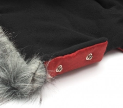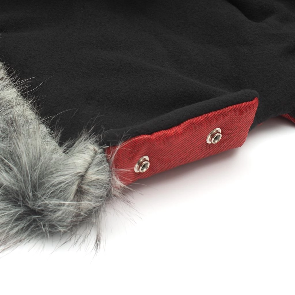 Stylowa i praktyczna mufka do wózka, która niezawodnie chroni dłonie przed zimnem, wiatrem i mżawką. Każda dłoń znajduje się w oddzielnej rękawicy połączonej wspólną górną częścią dla lepszego komfortu termicznego. Łatwe mocowanie do rączki za pomocą nap, przyjemna futrzana lamówka i ocieplone wnętrze dla wygody podczas zimowych spacerów.