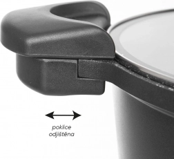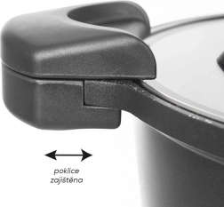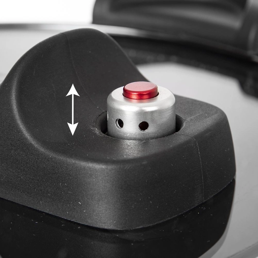 Dwa zawory bezpieczeństwa, silikonowa uszczelka i przesuwne uchwyty niezawodnie zabezpieczają pokrywę i kontrolują ciśnienie podczas gotowania.