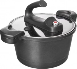 Gotuj szybciej i zdrowiej z szybkowarem GRANDE o pojemności 5,5 l i średnicy 26 cm. Dzięki specjalnej pokrywie szybkowarowej skrócisz czas gotowania, zachowasz więcej składników odżywczych i smaku oraz zaoszczędzisz nawet 50% energii. Wytrzymała granitowa powłoka nieprzywierająca PFLUON GRANIT, równomierna dystrybucja ciepła, bezpieczne zamykanie z podwójnym zaworem oraz kompatybilność ze wszystkimi typami kuchenek, w tym indukcją.