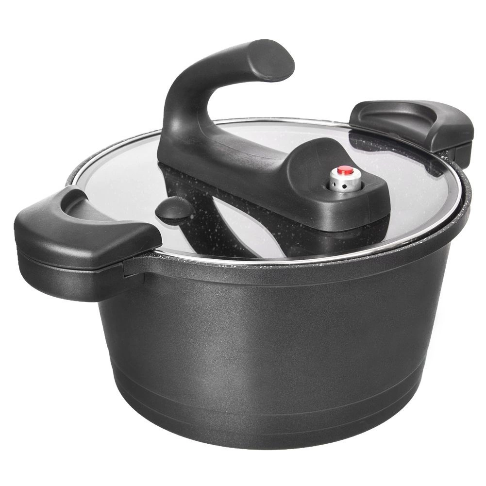 Przemyślana konstrukcja zapewnia równomierne rozprowadzanie ciepła, minimalny ubytek pary i nawet 50% oszczędności energii względem zwykłego garnka. Elementy bezpieczeństwa, takie jak dwa zawory bezpieczeństwa, silikonowa uszczelka oraz przesuwne uchwyty blokujące, utrzymują ciśnienie pod kontrolą i zachowują soczystość oraz aromat potraw.