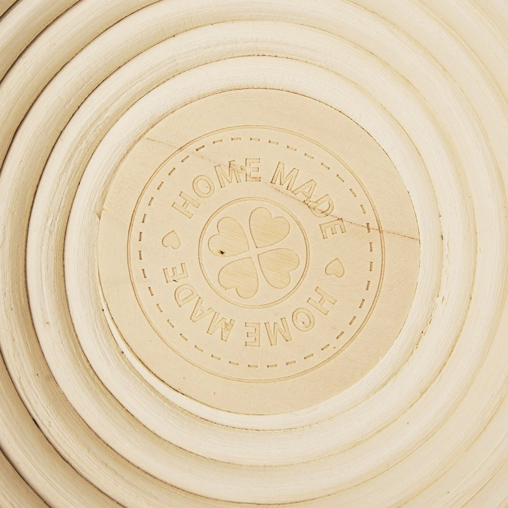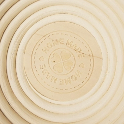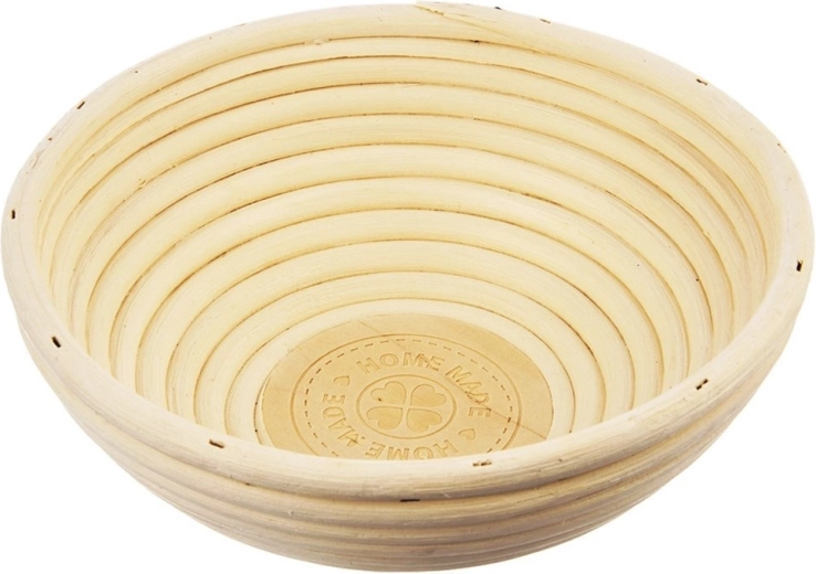 Ratanowy kosz do wyrastania to niezbędne akcesorium dla wszystkich miłośników domowego wypieku chleba. Naturalny rattan wyróżnia się zdolnością odprowadzania wilgoci z powierzchni ciasta, co sprzyja powstaniu chrupiącej skórki i utrzymaniu stabilnego kształtu bochenka. Delikatne okrągłe żłobienia pozostawiają na chlebie atrakcyjny spiralny wzór, a dno z napisem HOME MADE dodaje Twojemu pieczywu oryginalny charakter.