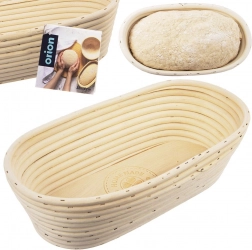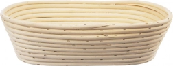 Wysokiej jakości owalny koszyk z naturalnego rattanu do wyrastania domowego chleba. Dzięki żebrowanej strukturze pomaga utrzymać kształt bochenka, zapewnia równomierne wyrastanie i tworzy na skórce dekoracyjny relief. Odpowiedni dla bochenka o masie ok. 1,5 kg (około 750 g mąki).