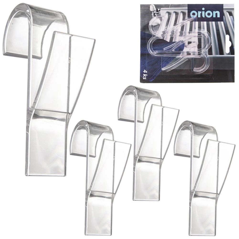 Zestaw 4 przezroczystych haczyków zaprojektowano do montażu bez wiercenia – po prostu zawieś je na grzejniku drabinkowym lub pokojowym o grubości do 2,5 cm. Każdy haczyk ma wymiary 6 × 2,5 × 10 cm i dzięki kształtowi pewnie utrzyma ręczniki, szlafroki, piżamy oraz kuchenne ściereczki.