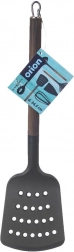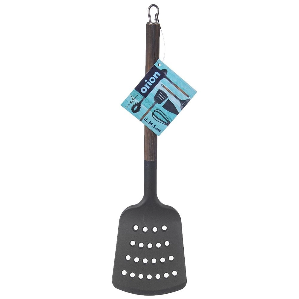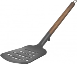Łopatka WOODEN o wymiarach 34,5 × 9 cm wykonana jest z wysokiej jakości termoplastu PBT, który charakteryzuje się wysoką sztywnością i trwałością. Metalowa rączka z wykończeniem w dekorze drewna zapewnia wygodny chwyt i elegancki wygląd, który pasuje zarówno do tradycyjnych, jak i nowoczesnych kuchni.