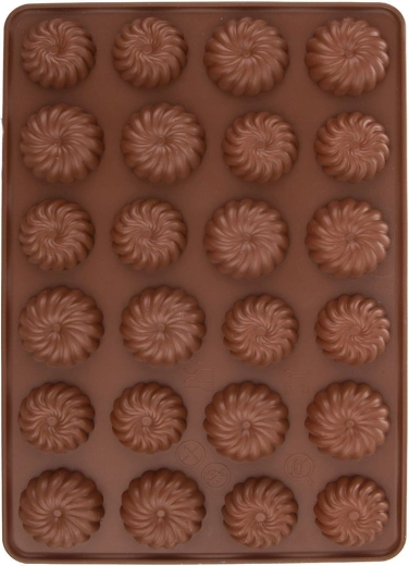 Odkryj wygodne pieczenie z brązową silikonową formą Sillinie. Dzięki 24 komorom w kształcie kwiatów przygotujesz ciasteczka, pralinki i czekoladki z małym wgłębieniem idealnym na marmoladę lub krem. Forma jest lekka i elastyczna, nie wchłania zapachów ani smaków i zapewnia łatwe wyjmowanie bez konieczności natłuszczania.
