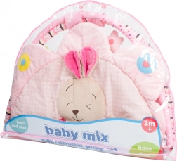 Mata edukacyjna Baby Mix króliczek dostarcza maluszkowi radości z odkrywania kolorów, kształtów i dźwięków. Dwa skrzyżowane pałąki z wiszącymi zabawkami zachęcają do unoszenia główki i chwytania, co naturalnie wzmacnia mięśnie szyi i pleców. Puszyste wypełnienie oraz delikatny, welurowy materiał tworzą wygodne i bezpieczne środowisko do zabawy i odpoczynku.