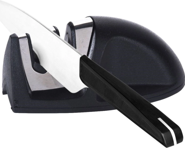 Kompaktowa, dwustopniowa ostrzałka do noży zapewnia szybkie i bezpieczne odnowienie krawędzi Twoich noży kuchennych. Oferuje fazę węglikową (grubą) do ostrzenia oraz fazę ceramiczną do polerowania i wykańczania, ma antypoślizgową podstawę, ergonomiczny uchwyt i jest odpowiednia do noży ze stali nierdzewnej i noży stalowych z powłoką.