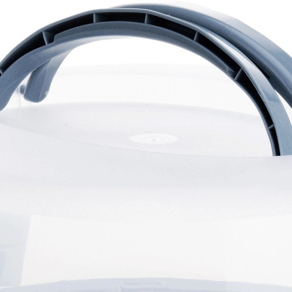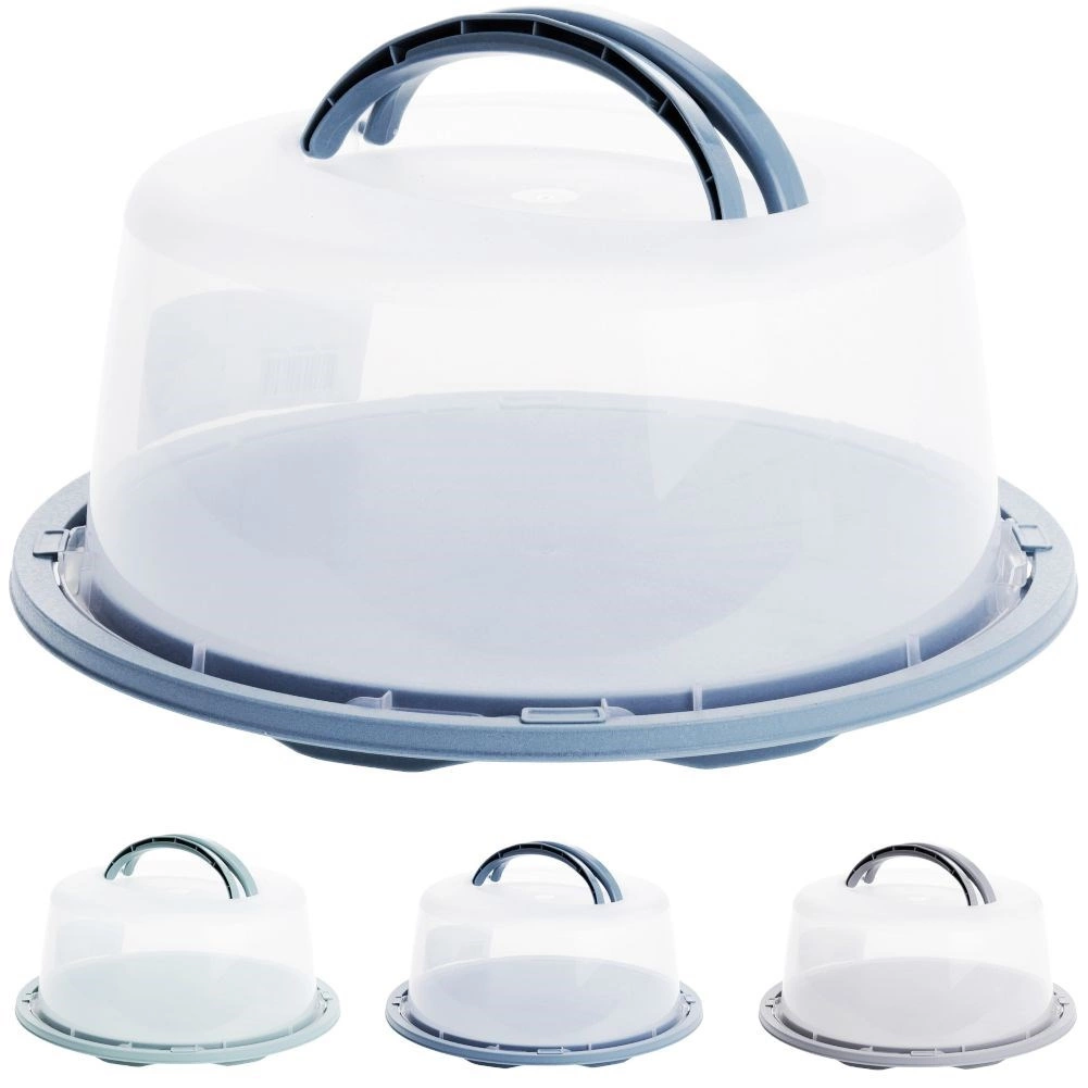 Ten okrągły pojemnik transportowy idealnie nadaje się do tortów, ciast i innego wypieku. Przezroczysta, kopułowa pokrywa z wygodnym, składanym uchwytem ułatwia przenoszenie, a zamki dookoła zapewniają bezpieczne zamknięcie w trakcie podróży. Podstawa dostępna jest w kilku kolorach (niebieskim, zielonym, szarym – wysyłamy losowo).