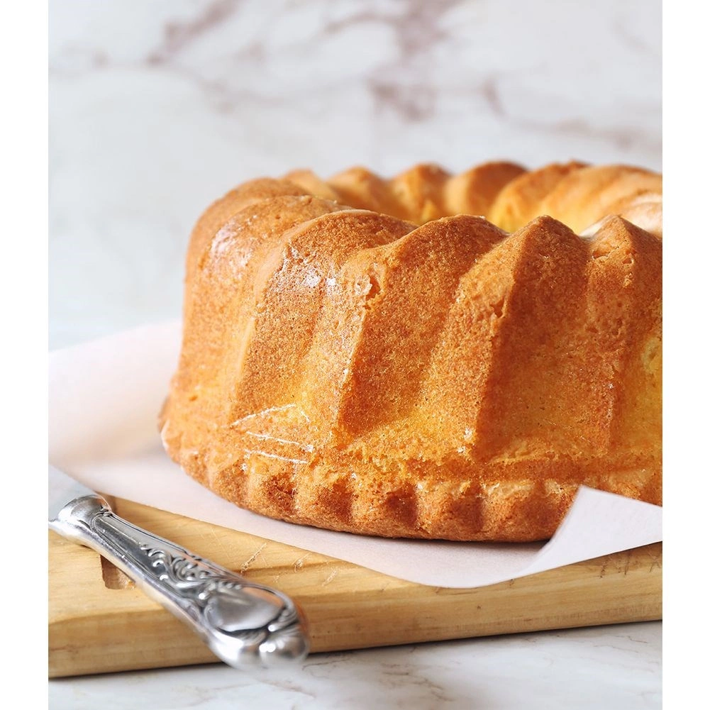 Żebrowane boki i centralny komin pieką równomiernie i tworzą efektowną, chrupiącą powierzchnię babki.