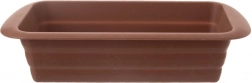 Ta prostokątna silikonowa forma w brązowym kolorze jest idealna do pieczenia domowego chleba, ciast ucieranych i drożdżowych, a także mas babkowych czy pasztetów. Elastyczny i wytrzymały silikon zapewnia wygodne wyjmowanie gotowych wypieków bez konieczności natłuszczania czy podsypywania mąką.
