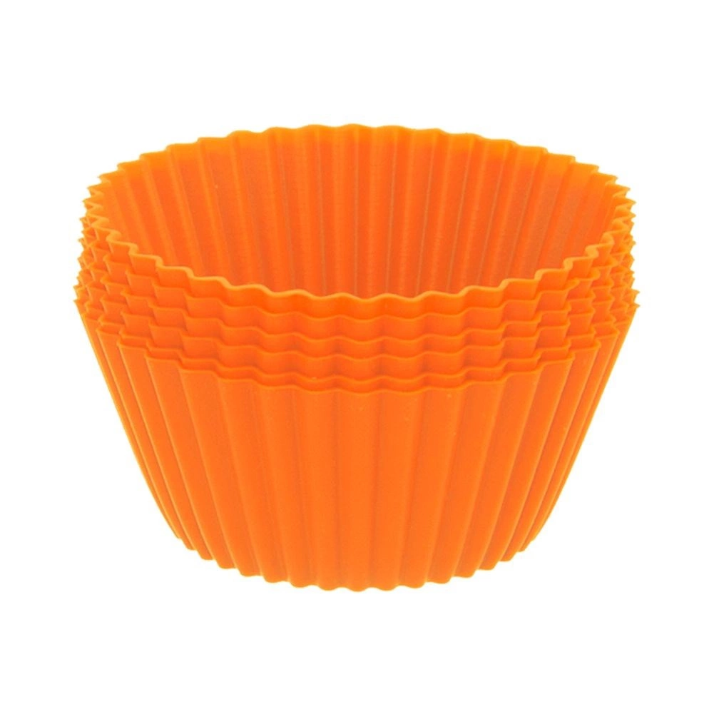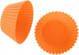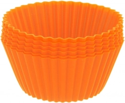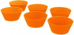Praktyczny zestaw sześciu silikonowych foremek do muffinek o średnicy 5,5 cm i wysokości 3 cm w kolorze pomarańczowym. Foremki są sztywne i elastyczne, nieprzywierające oraz wielokrotnego użytku. Dzięki odporności na temperatury od -40 °C do +220 °C nadają się do piekarnika, mikrofalówki i zamrażarki, a także można je myć w zmywarce.