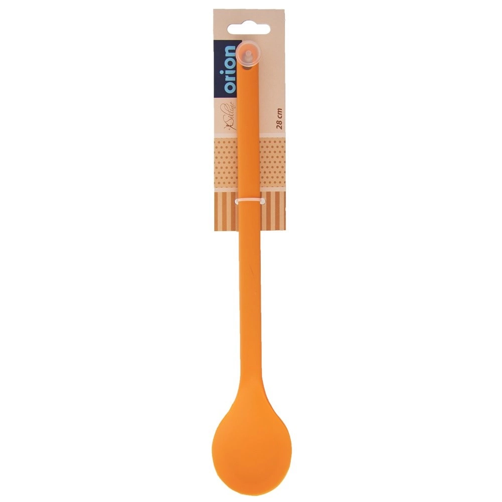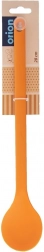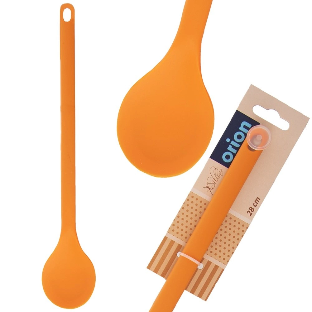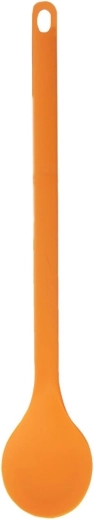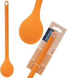 Oczko w uchwycie umożliwia zawieszenie na relingu kuchennym. Silikon nie pochłania zapachów, a łyżkę można myć w zmywarce.