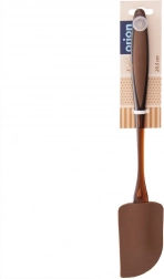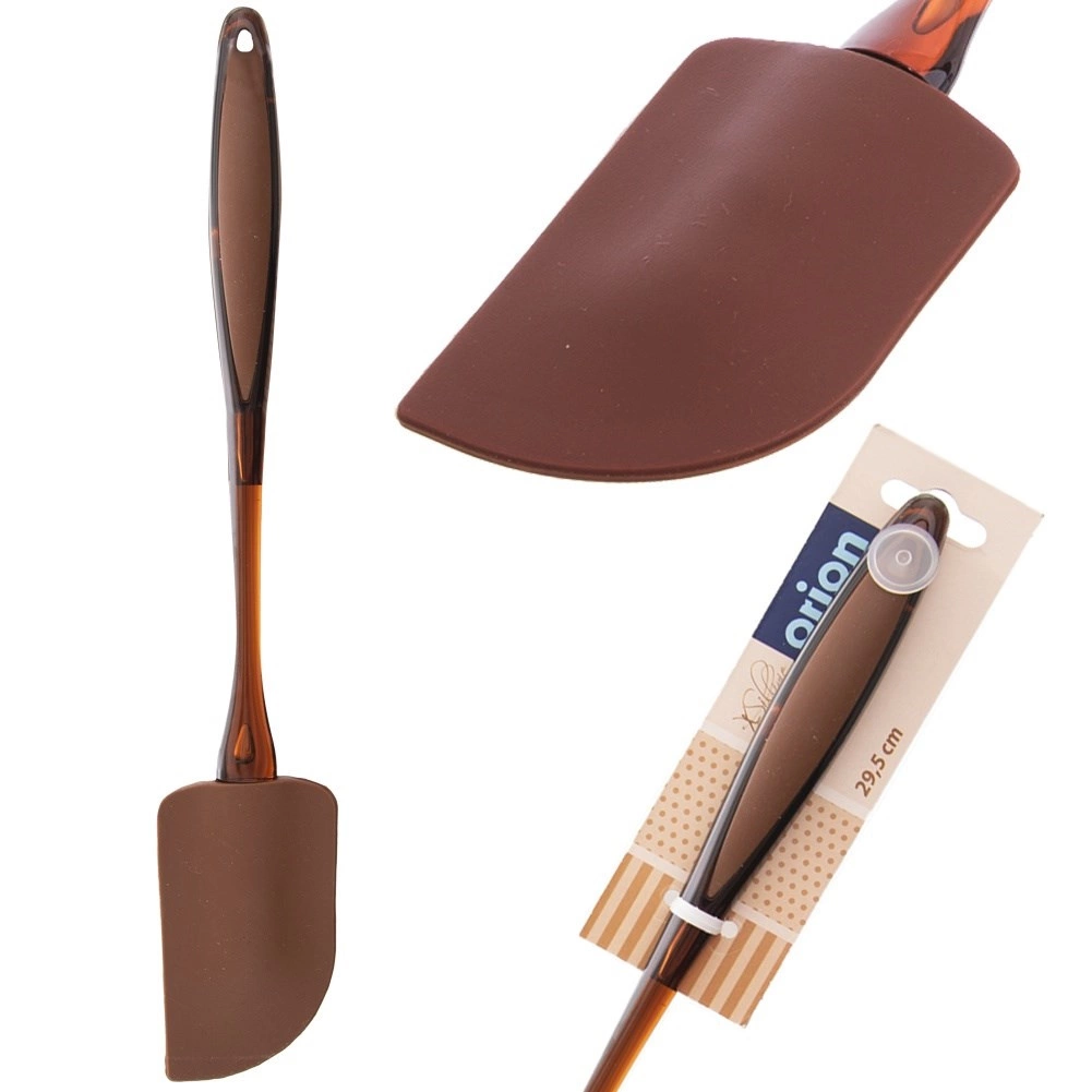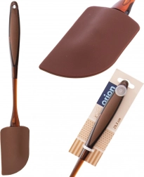 Ta uniwersalna łopatka to niezastąpiona pomoc przy pieczeniu i gotowaniu. Wykonana z elastycznego silikonu, który nie absorbuje zapachów i płynów, uzupełniona o ergonomiczną, antypoślizgową rączkę dla komfortowego i pewnego chwytu. W eleganckim brązowym kolorze świetnie pasuje zarówno do tradycyjnej, jak i nowoczesnej kuchni.