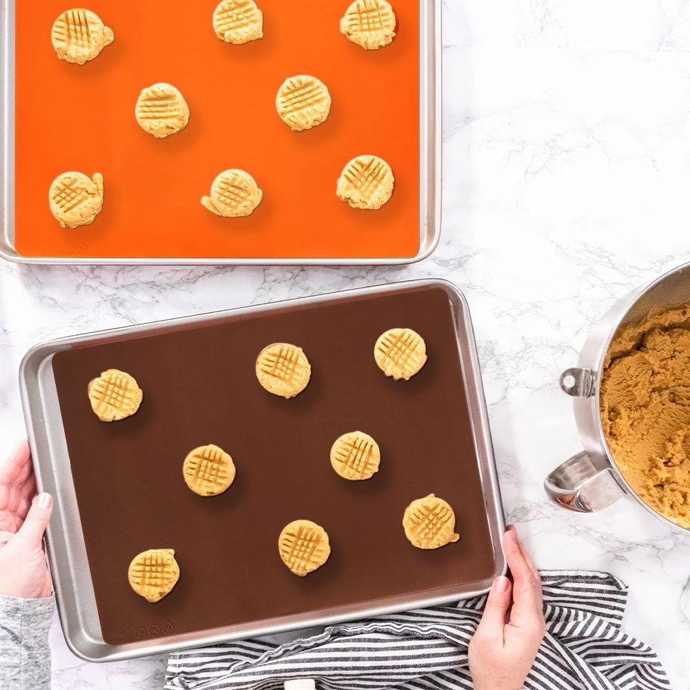 Materiał jest odporny na mróz i pieczenie w piekarniku (−40 °C do 220 °C), więc wykorzystasz ją jako matę do pieczenia, podkład do prac cukierniczych, a także do przechowywania ciasta w lodówce lub zamrażarce. Silikon jest higieniczny, nie absorbuje zapachów ani płynów i bardzo łatwo się czyści – wystarczy opłukać lub włożyć do zmywarki.