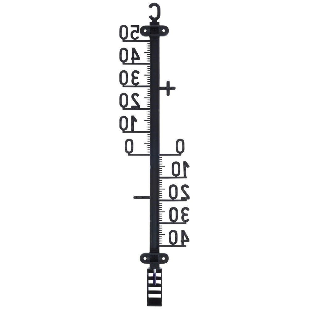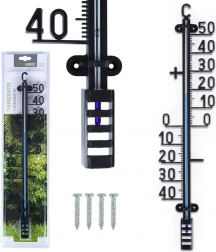 Termometr wykonano z wysokiej jakości, wytrzymałego plastiku w eleganckim czarnym kolorze, odpornego na deszcz, słońce i mróz. Montaż jest prosty – otwory do mocowania pozwalają szybko przymocować go do elewacji, drewnianego ogrodzenia lub wiaty ogrodowej.
