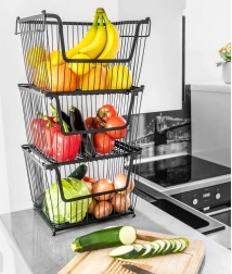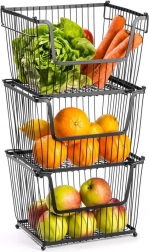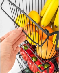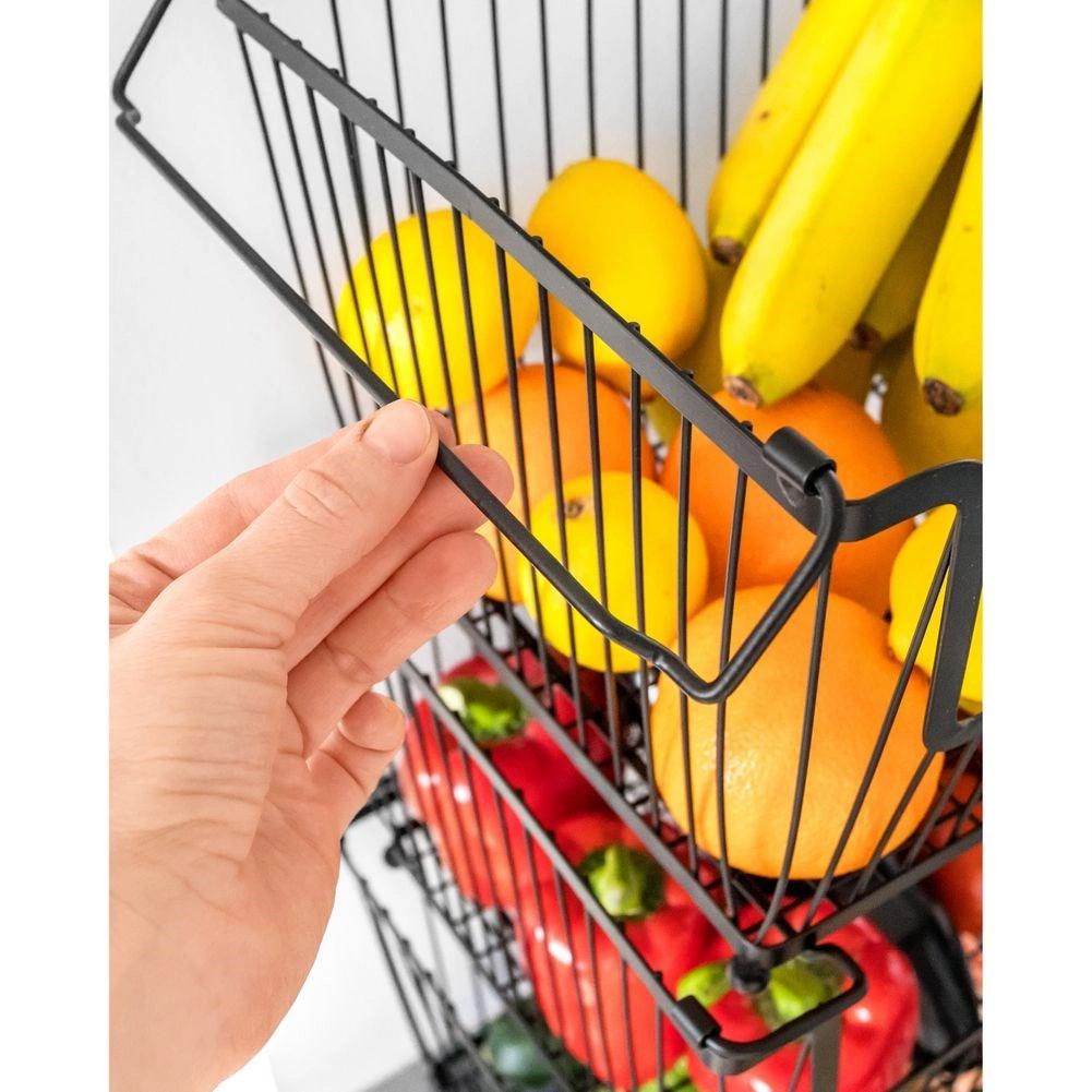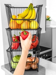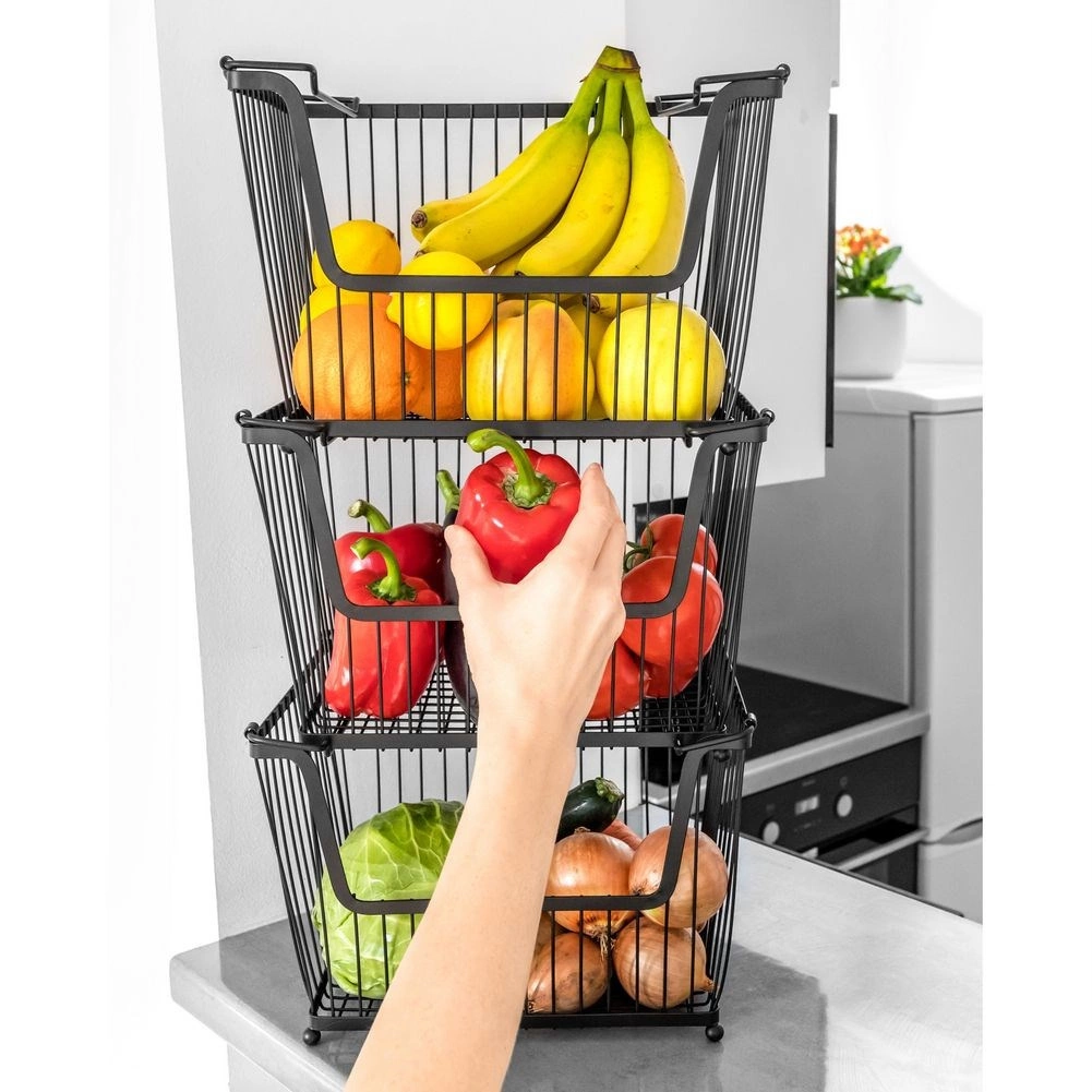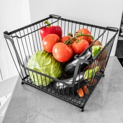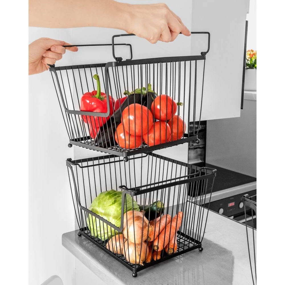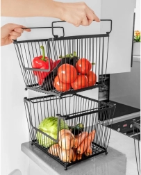 Kilka koszyków można ustawiać jeden na drugim, tworząc praktyczny, wielopoziomowy stojak, który utrzyma porządek w kuchni i wykorzysta przestrzeń w pionie.