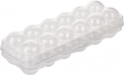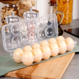 Specjalnie profilowane miejsca stabilnie utrzymują każde jajko, a solidna pokrywa z klipsem zapobiega niechcianemu otwarciu podczas manipulacji. Pudełko jest lekkie, wielokrotnego użytku i świetnie nadaje się na zakupy na targu, do lodówki i zamrażarki.